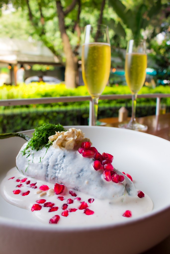 Para acompañar este platillo poblano con un toque costeño, nos recomendaron una copa de vino espumoso que resultó ser la compañía ideal.
